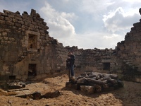 Jordan. Umm al Jimal, Abed AlFatah Ghareeb in courtyard of House XVIII
