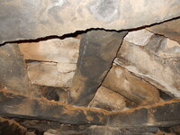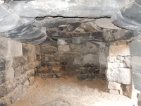 Jordan. Umm al Jimal, room in House XVII repaired as part of Ambassadors Fund for Cultural Preservation project, view of corbels in ceiling