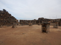 Jordan. Umm al Jimal, great room of House XIII with cattle screen for large animals