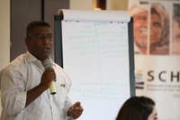 الأردن. العقبة، فريق عمل مشروع استدامة الإرث الثقتافي بمشاركة المجتمعات المحلية خلال ورشة عمل استراتيجية الإرث الأثري الأردني، محور إدارة مصادر الإرث الأثري