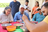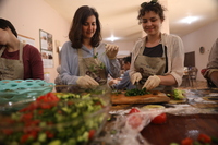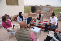 الأردن. غور الصافي، فريق المركز الأمريكي للأبحاث وأعضاء من فريق مشروع استدامة الإرث الثقافي بمشاركة المجتمعات المحلية والوكالة الأمريكية للتنمية الدولية في زيارتهم إلى مطبخ الصافي لتجربة مجموعة من تجارب السياحة الزراعية