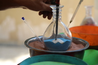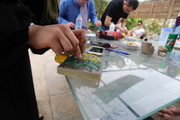 الأردن. العقبة، أعضاء فريق مشروع استدامة الإرث الثقافي بمشاركة المجتمعات المحلية خلال المشاركة في مجموعة من التجارب التي تقدمها عقباوي