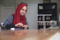 الأردن. العقبة، فريق الوكالة الأمريكية للتنمية الدولية أثناء تجربة تشكيل المجوهرات