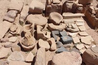 Jordan. Petra, Temple of the Winged Lions, pottery sherds from sifting placed here for educational groups to use