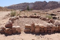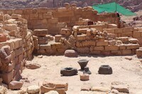 Jordan. Petra, Temple of the Winged Lions, basalt grinding stones in room within northern complex