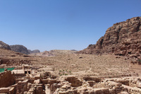 Jordan. Petra, Temple of the Winged Lions, northern complex next to temple, facing south, Umm el Biyara in the background