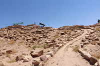 Jordan. Petra, Temple of the Winged Lions, pathway on TWL site, Temenos Gate and Qasr al Bint in background
