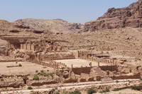 Jordan. Petra, Temple of the Winged Lions, view from the temple to Royal Tombs, with pathway and Nymphaeum spring