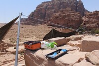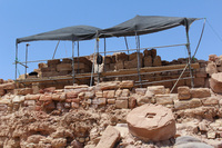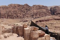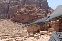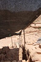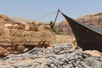 Jordan. Petra, Temple of the Winged Lions, conservation tools and shade