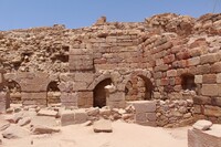 Jordan. Petra, Temple of the Winged Lions, looking at west aisle of cella with wooden column braces