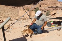 Jordan. Petra, Temple of the Winged Lions, local worker with dogs