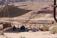 Jordan. Petra, Temple of the Winged Lions, shade by the pottery dump