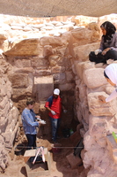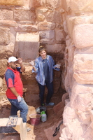 Jordan. Petra, Temple of the Winged Lions, team members mortaring wall in southwest quadrant