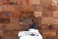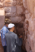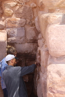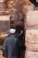Jordan. Petra, Temple of the Winged Lions, Ahmad Mowasa in the southwest quadrant next to the niche in the southwest quadrant east wall