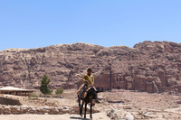 Jordan. Petra, Temple of the Winged Lions, boy on donkey