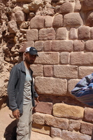 Jordan. Petra, Temple of the Winged Lions, Ahmad Mowasa standing next to the remains of the retaining wall in the southwest quadrant