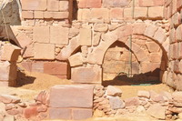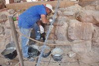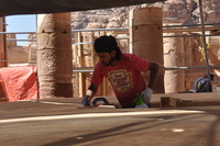 Jordan. Petra, Temple of the Winged Lions, Baha‘ Jankhot applying mortar in front of cella podium