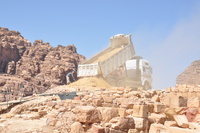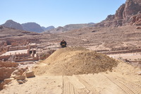 Jordan. Petra, Temple of the Winged Lions, truck delivering soil from outside the park for the purpose of backfilling