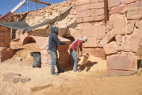Jordan. Petra, Temple of the Winged Lions, landscape team members creating the buttress in the southwest quadrant