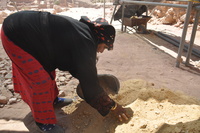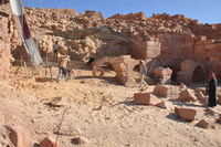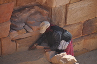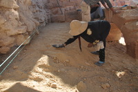 Jordan. Petra, Temple of the Winged Lions, Ageleh Jmeidi collecting soil
