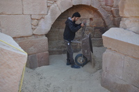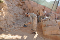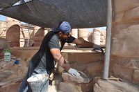 Jordan. Petra, Temple of the Winged Lions, team member depositing sand/soil into southwest quadrant for backfilling purposes