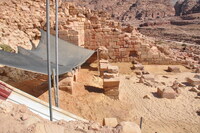 Jordan. Petra, Temple of the Winged Lions, the southwest quadrant partially backfilled