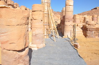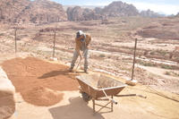 Jordan. Petra, Temple of the Winged Lions, coarse sand added to path build out in front of cella