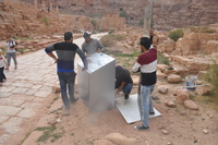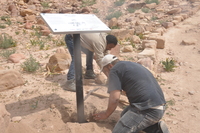 Jordan. Petra, Temple of the Winged Lions, team members installing orientation / interpretive signs at the Temple of the Winged Lions