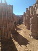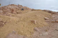 Jordan. Petra, Temple of the Winged Lions, path build-out completed, with course sand added to bank in front of cella, fence posts installed