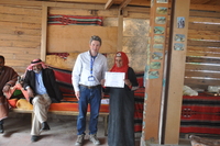 Jordan. Petra, Temple of the Winged Lions, Jack Green and Khitmeh Aljdelat receiving a certificate for her work with the Temple of the Winged Lions project