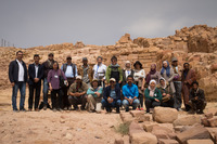 Jordan. Petra, Temple of the Winged Lions, gathered representatives from Dept. of Antiquities, PDTRA, TWL Team, ACOR and USAID SCHEP in front of the southwest quadrant