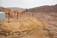 Jordan. Petra, Temple of the Winged Lions, geotextile layer added to west side of cella