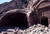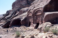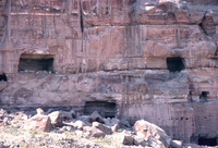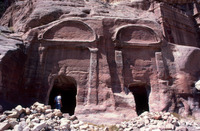 Jordan. Petra, A group of two arch-topped tombs below Umm al-Biyara