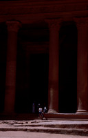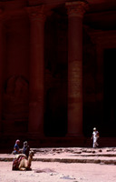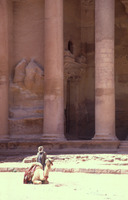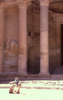 Jordan. Petra, Khazneh, lower order, south (left) man with camel