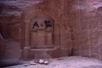 Jordan. Petra, Siq, two cult niches with betyls carved into a rock face in the gorge of the Siq