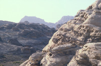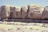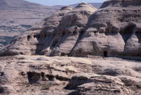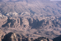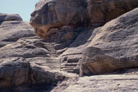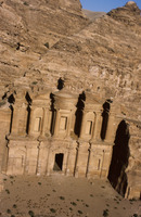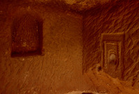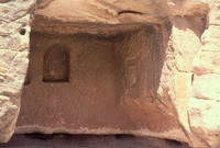 Jordan. Petra, al-Madras, niche (above), rock-cut reservoir (below)