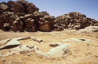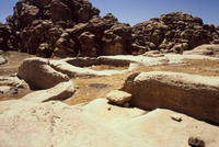 Jordan. Petra, Qasr al-Bint, fragments of south-east pilaster capital