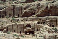 Jordan. Petra. outer Siq, a series of tomb facades in the theater necropolis so neatly lined up that they almost appears to be buildings along a street