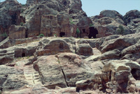 Jordan. Petra, Outer Siq, Nabatean tombs back of the Theater