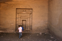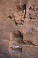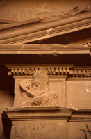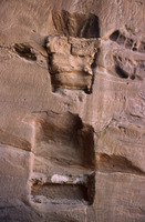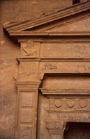 Jordan. Petra, interior of a chamber no. 468, busts of figure holding a torch carved near the outside corners and a small pediment with acroteria