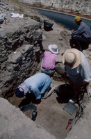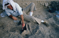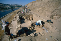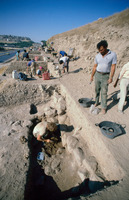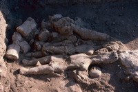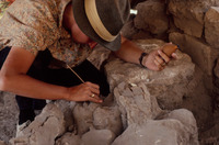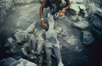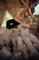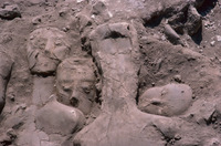 Jordan. Amman, Ain Ghazal, the upper layer of the cache of plaster human statues and busts with Marci Donaldson
