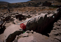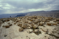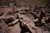 Jordan. Khirbet et-Tannur, view to lower courses of Inner Temenos Enclosure facade