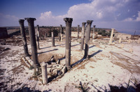 Jordan. Umm Qais (Gadara), colonnaded courtyard and Lake Tiberias