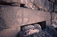 Jordan. Mafraq, Umm al-Jimal, Christian cross on Byzantine Church