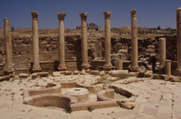 Jordan. Jerash, Corinthian columns heads, Temple of Artemis