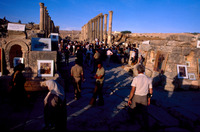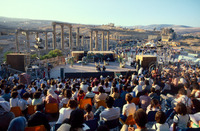 Jordan. Jerash, Festival, night view over Forum and Cardo