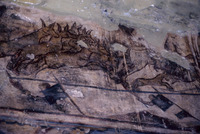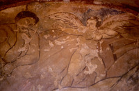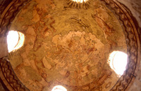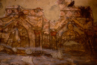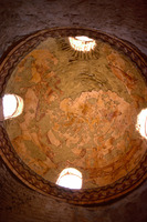 Jordan. Qusayr Amra, the decoration of this aisle is completed with the caissons which show craftsman's scenes: stonemasons, carpenters, blacksmiths and masons, representing the different stages of the construction of a building