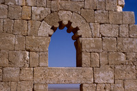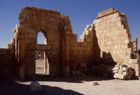 Jordan. Qasr al-Hallabat, eighth century Umayyad Mosque with cusped arch