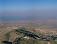 Mount Nebo, Memorial of Moses, from north east, Dead Sea in background