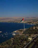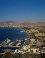 Aqaba, view west over marina and waterfront, Eilat in background